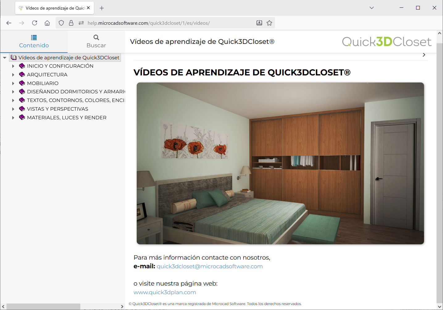 Esta opción muestra los "vídeos de aprendizaje" de Quick3DCloset®. Puede visitar la ayuda de los "Vídeos de aprendizaje" haciendo clic aquí: https://help.microcadsoftware.com/quick3dcloset/1/es/videos/