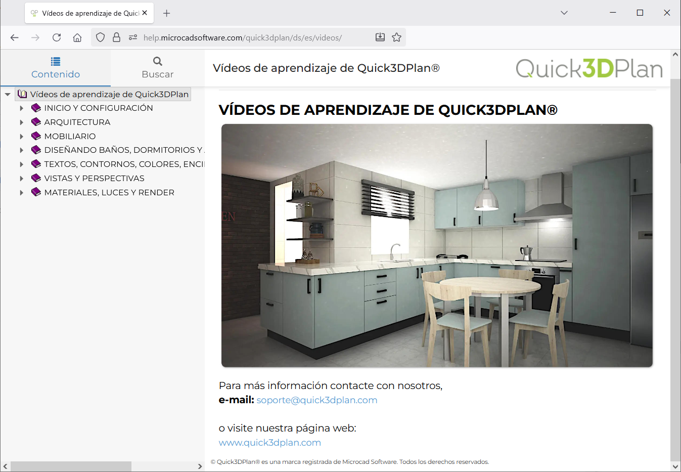 Puede visitar la ayuda de los "Vídeos de aprendizaje" haciendo clic aquí: https://help.microcadsoftware.com/quick3dplan/ds/es/videos/